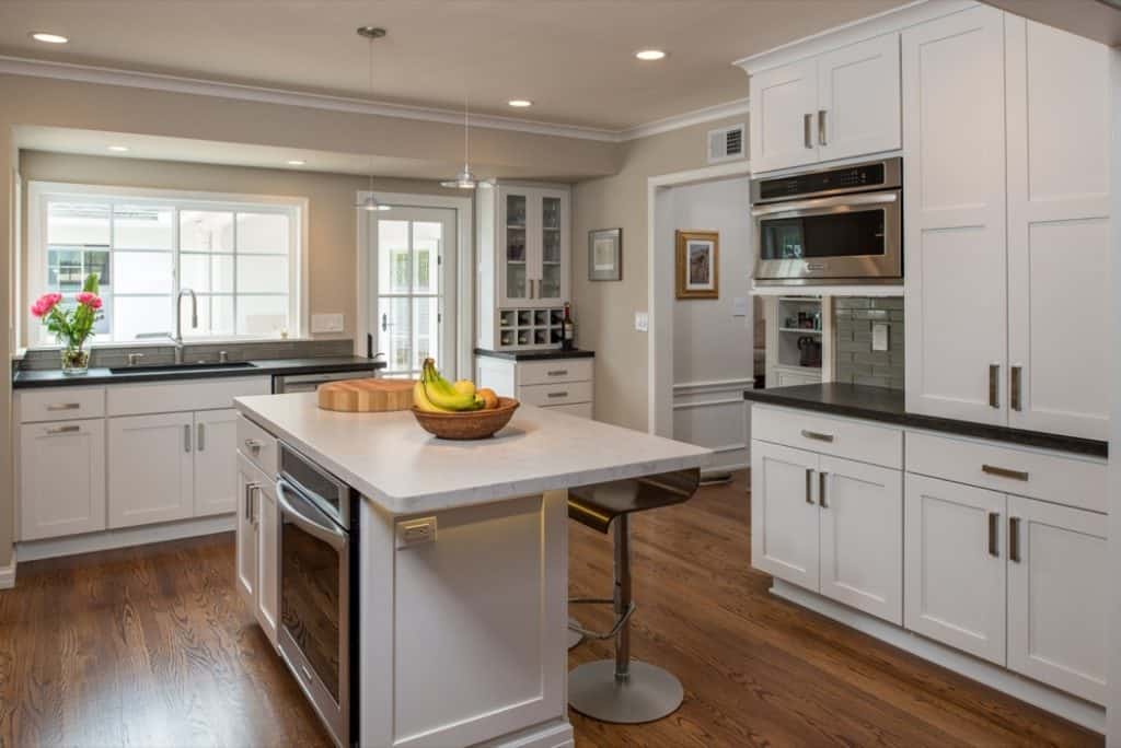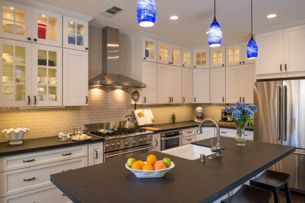 - Marble – Marble is referred to by some as the “Cadillac of countertop materials” and many people fall in love with the widely available material for its timeless and elegant beauty. The gleaming surface looks super polished and marble can work with almost any design style. It’s also popular among frequent bakers, as they say marble helps absorb any heat from pastry dough, which keeps the dough desirably cool. What are the cons of marble? It’s more prone to staining and scratching than some other natural stone options, making the care and maintenance a bit more work than some people expect.